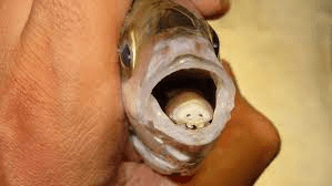 “Cymothoa exigua” is a parasite that invades the mouth of a fish, whom accidentally mistakes it for food. The parasite will cling to it’s tongue eating it, and living in the fish’s mouth eating the food that should go to the fish. In many cases, this does not kill the host fish.