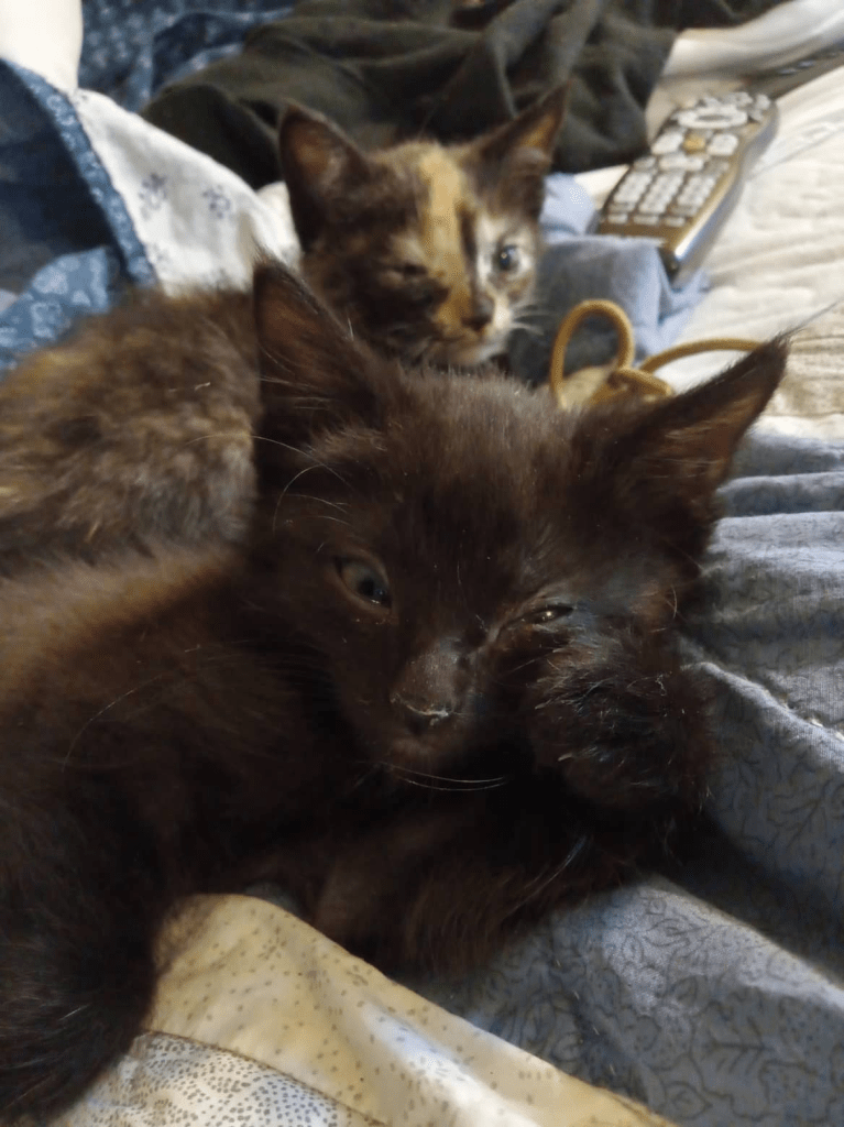 Action adventure: Kittens Anneplath takes the lead in about to sleep mode, while Kelly is backup. Always bet on black and calicos.